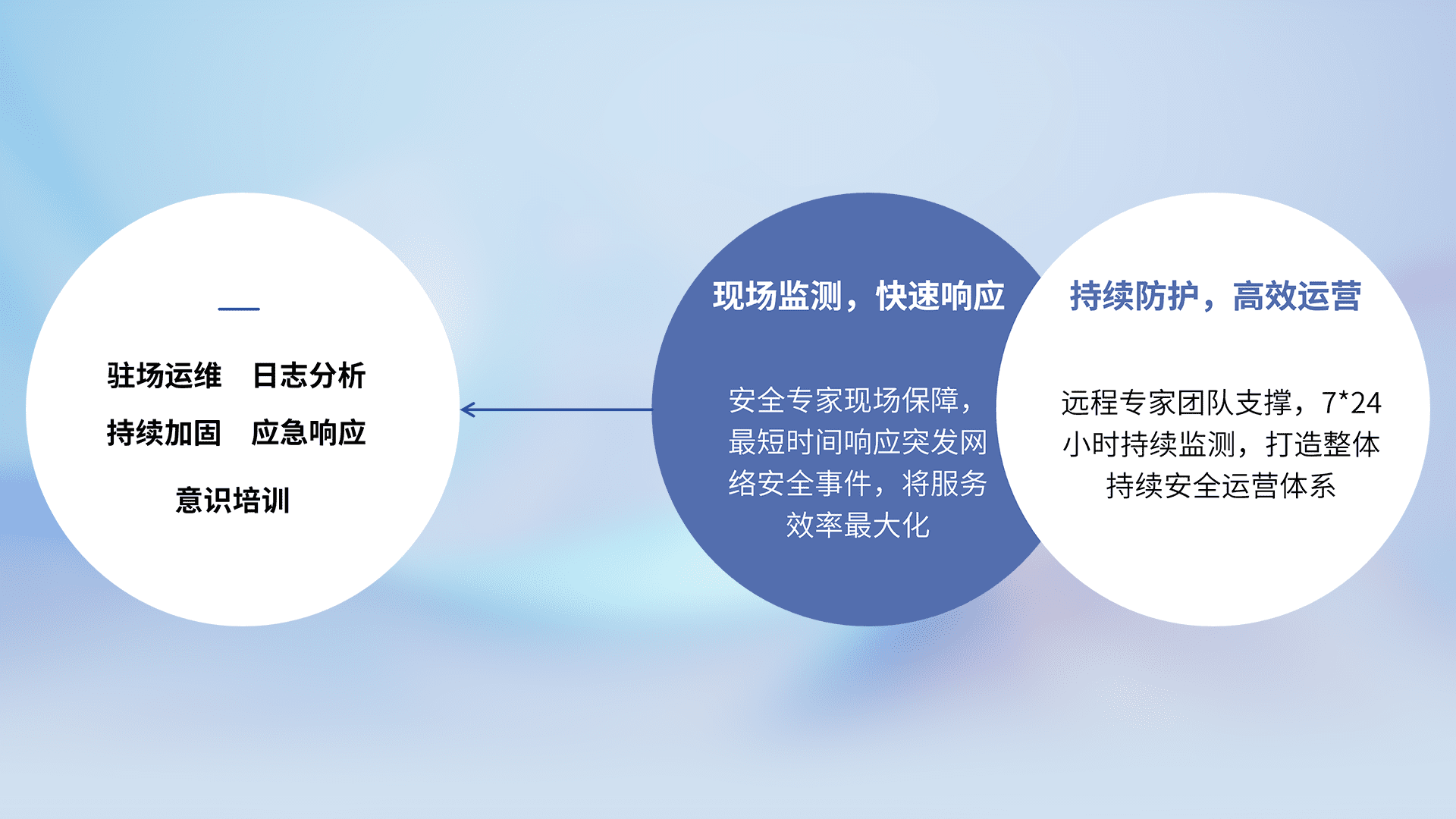 针对客户行业特性,,,提供专属的一站式安全管理服务,,,,帮助客户全面感知网络空间威胁,,,,通过安全专家的线上、、、线下防护支持,,实现风险闭环,,,,将安全保障常态化,,,为客户打造常态化安全运维运营服务。。。